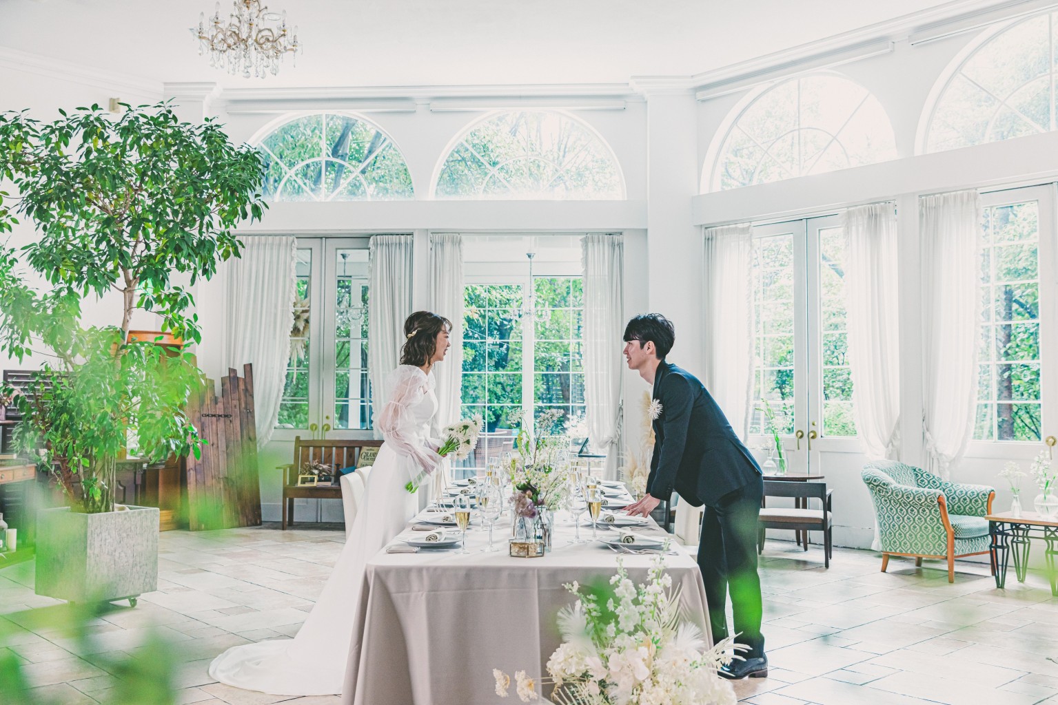 当式場は衣裳・装花・写真も直営なので、一般的な価格ながらより上質なものをご提供しています。会場やトレンドを熟知したスタッフが直接打ち合わせをおこない、おふたりのご希望をセンス良く形にします。